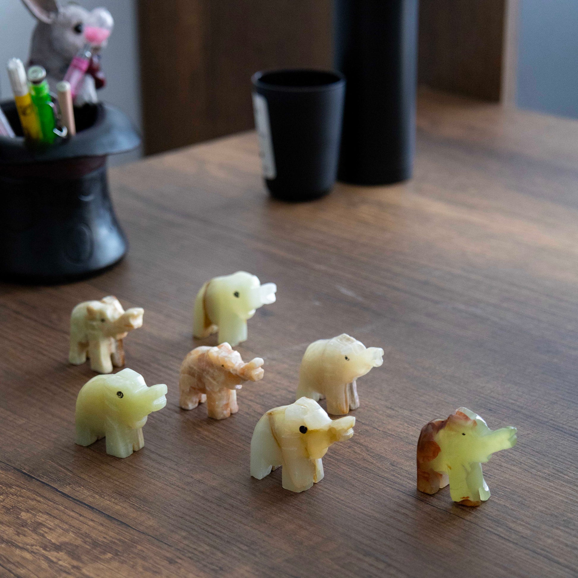 Bu özel set, 2 inç boyutunda 7 adet el yapımı oniks taş filden oluşmaktadır. Filler doğada bolluk, bereket, şans ve sadakati temsil eder. Feng Shui’de de ev ve iş yerlerinde pozitif enerji için sıklıkla tercih edilir.