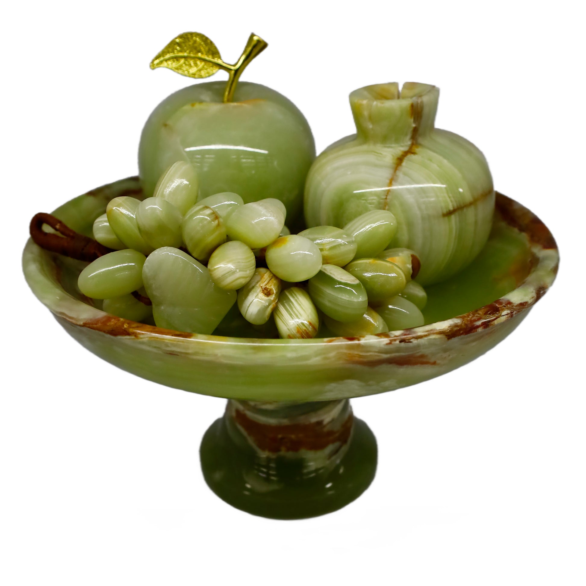 El İşçiliği Oniks Taşı Çanak ve Meyve Seti - Şık Feng Shui Dekoru