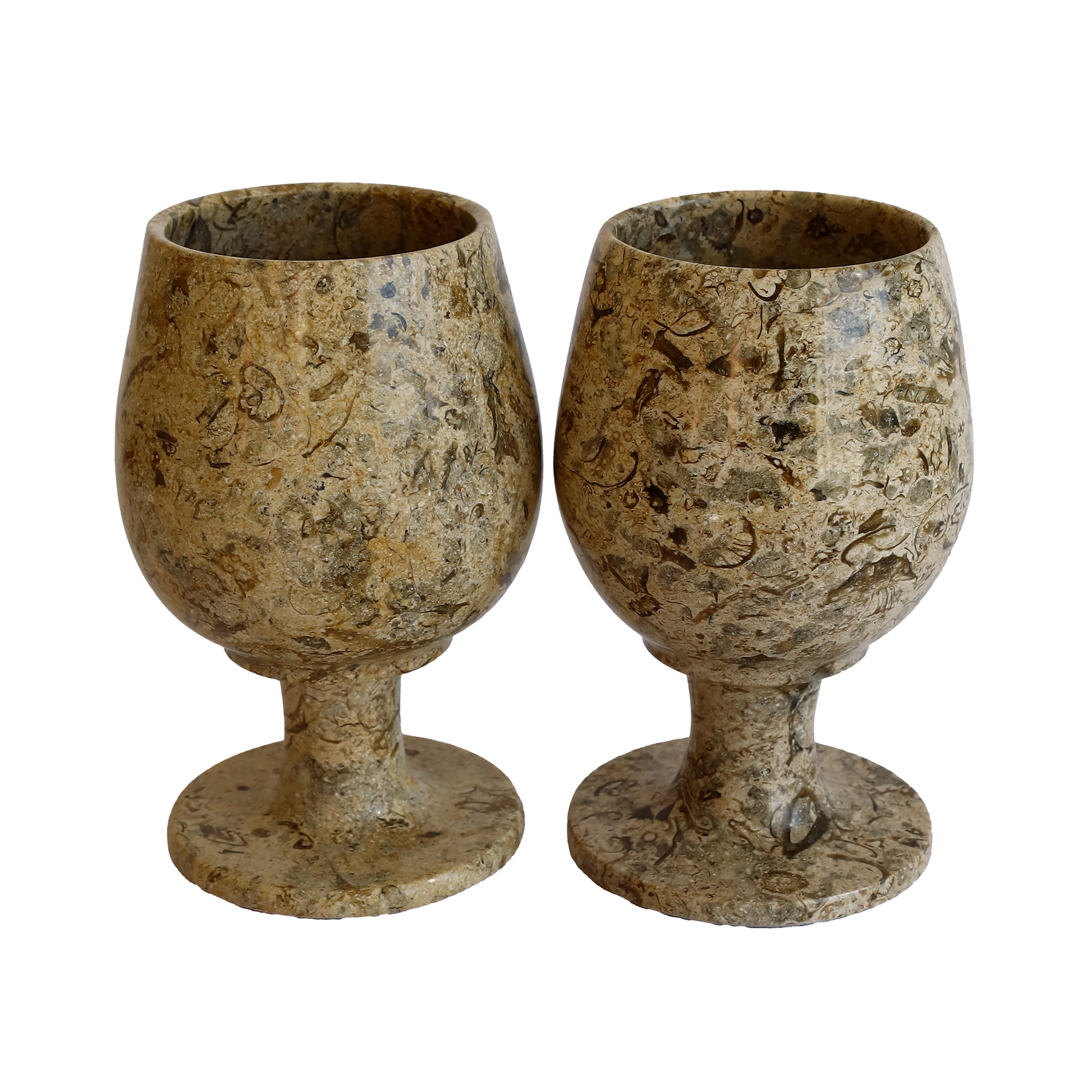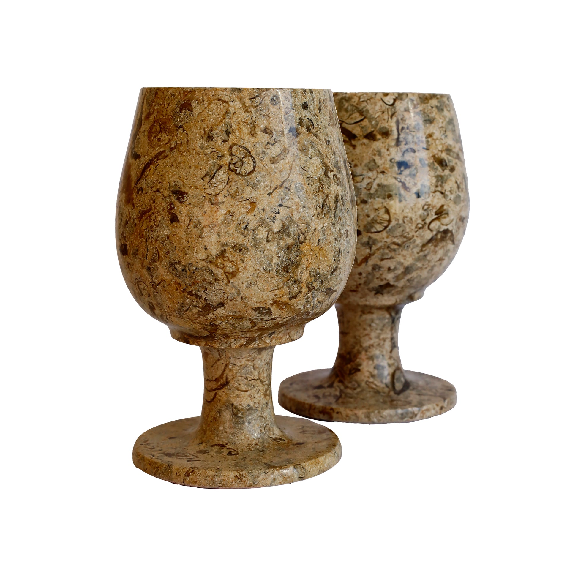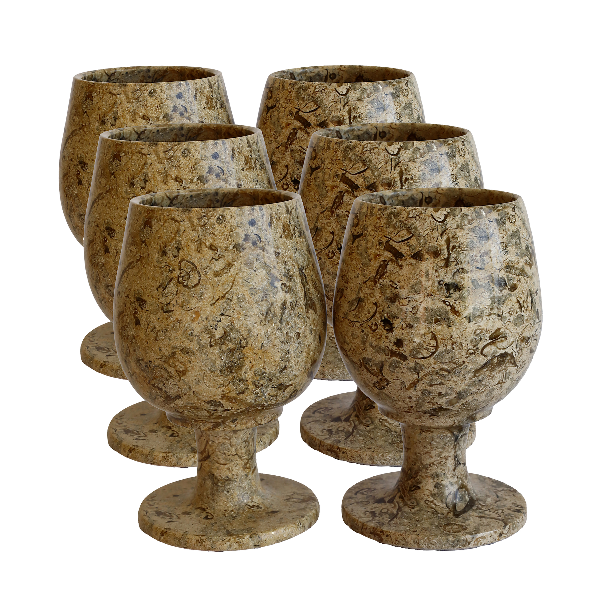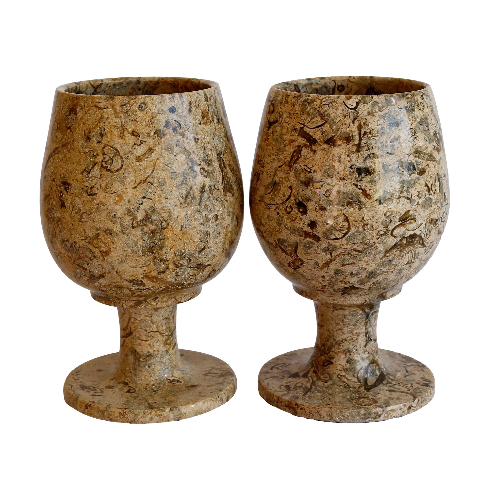 Fosilli Doğal Taş Kadeh Takımı – 3,5 İnç El Yapımı Şık Dekoratif Bardak Seti (2’li – 6’lı)
