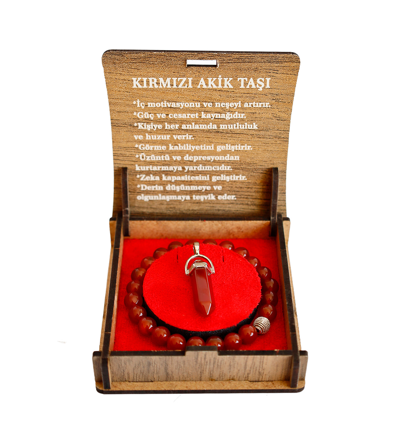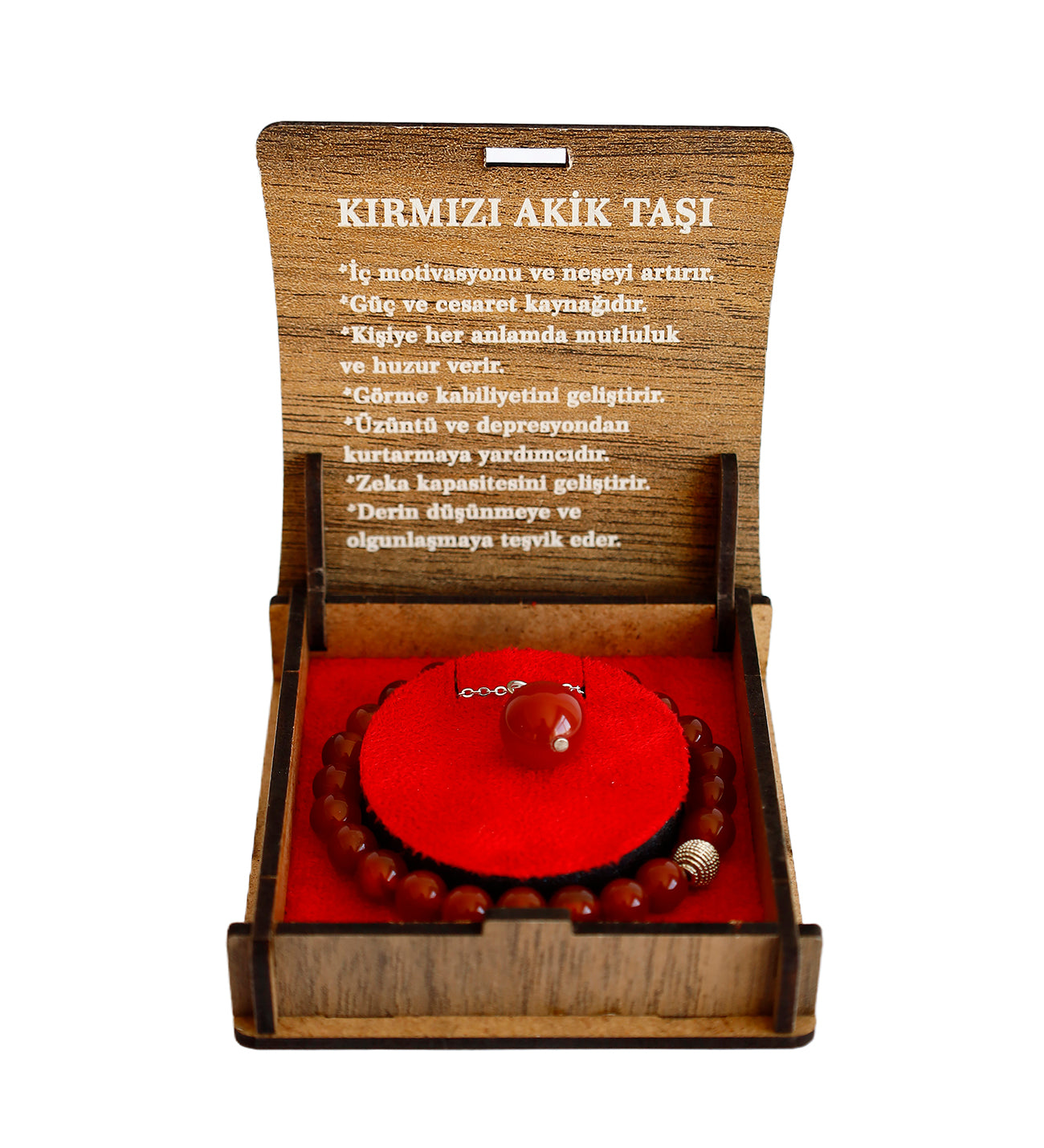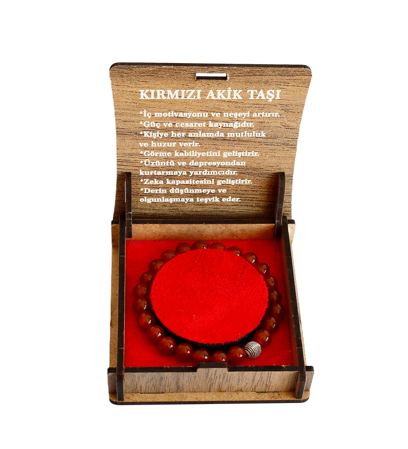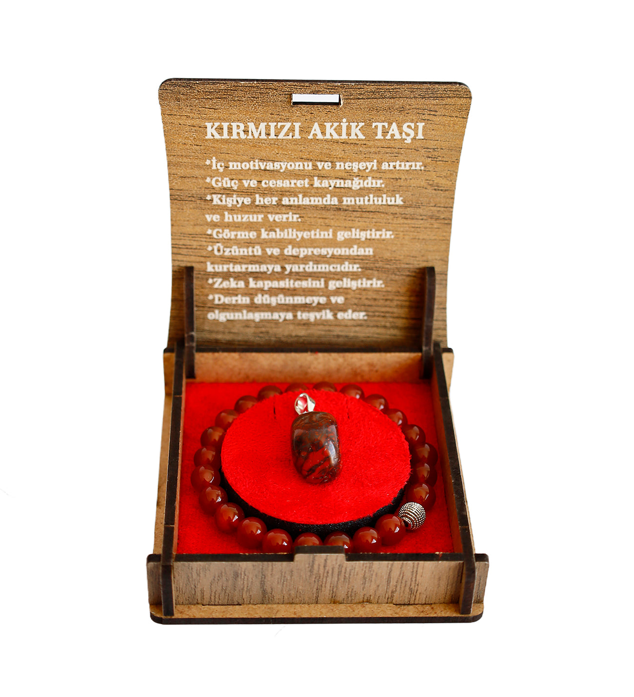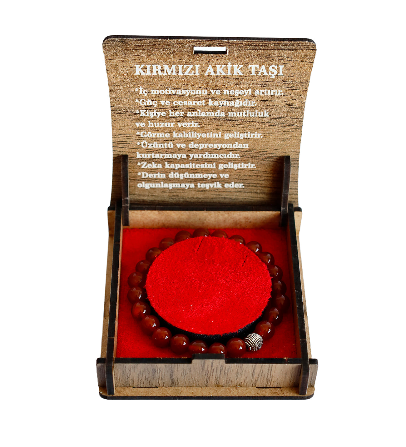 Bu özgün kırmızı akik bileklik, sevdiklerinize hediye edebileceğiniz anlamlı ve şık bir aksesuardır. Doğal taşların enerjisini hissedin, stilinizi güçlendirin!